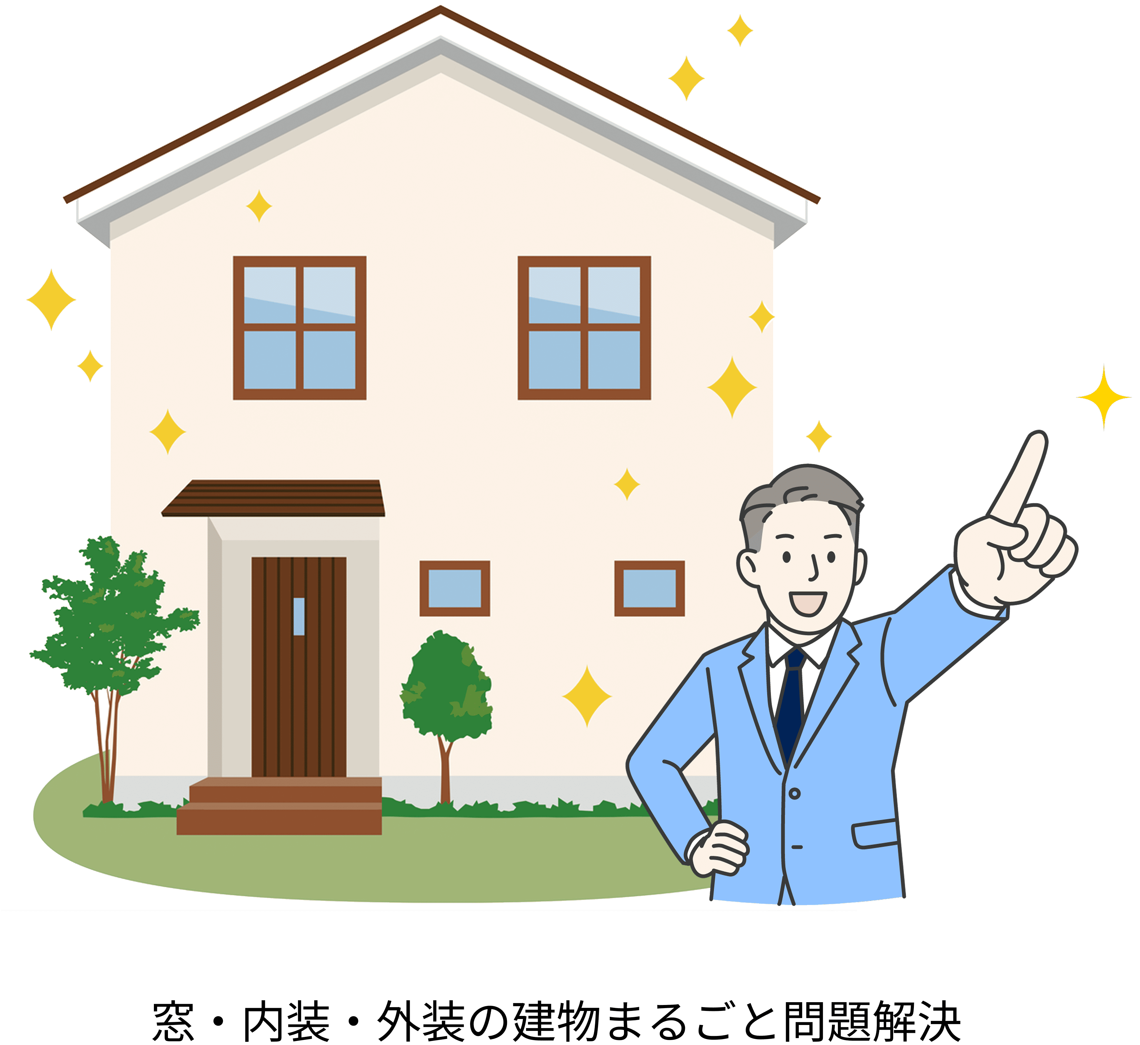 これら建物の内装・外装のお困りごと 建物まるごと冷暖なら1社ですべて解決します!